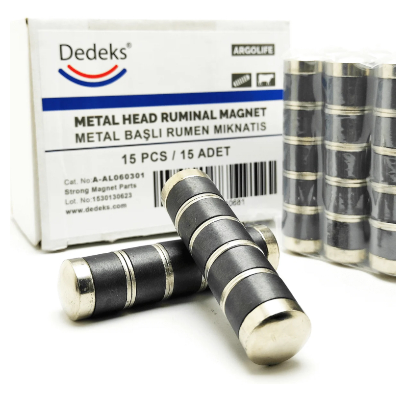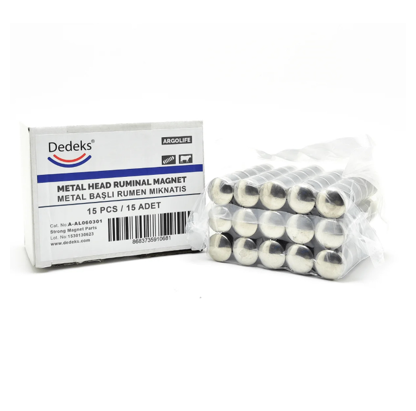 Dedeks Metal Başlı Rumen Mıknatısı, büyükbaş hayvanlarda yabancı metal cisimlerin oluşturabileceği riskleri önlemek amacıyla kullanılan etkili bir çözümdür.