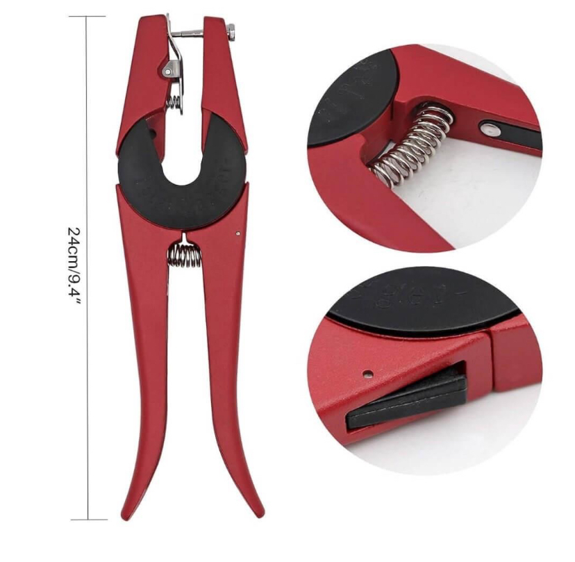Kulak küpesi takma pensi, büyükbaş ve küçükbaş hayvanlara küpe takma işlemlerinde kullanılan pratik ve dayanıklı bir ekipmandır.