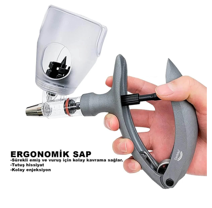 Koyun, sığır, tavuk ve güvercin aşılamaları için pratik uygulama imkânı sunar. Paket içerisinde yedek conta takımı, yedek yay ve bilye takımı dahildir. Bu sayede olası arızalarda yedek parçalar kullanılarak uzun ömürlü kullanım sağlanır.
