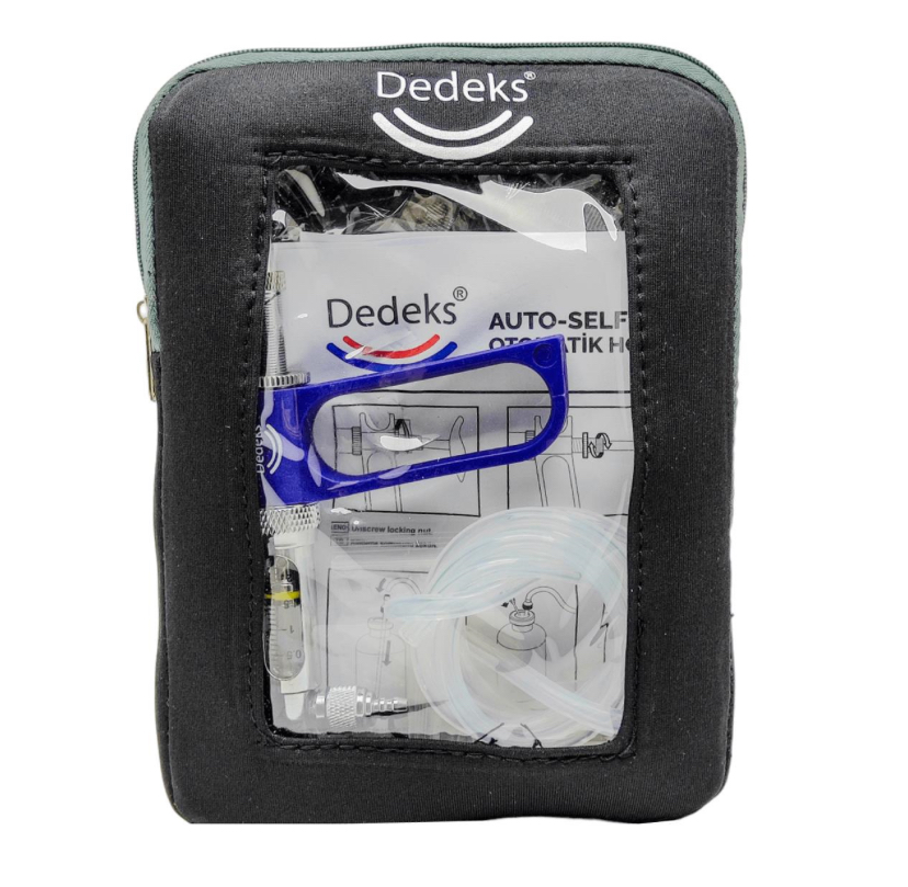 Dedeks 1 ml hortumlu otomatik enjektör, ekonomik fiyatıyla her kullanıcıya hitap eden bir fiyat/performans ürünüdür. Ürün, görselde belirtilen taşıma çantası ile birlikte gönderilmektedir.