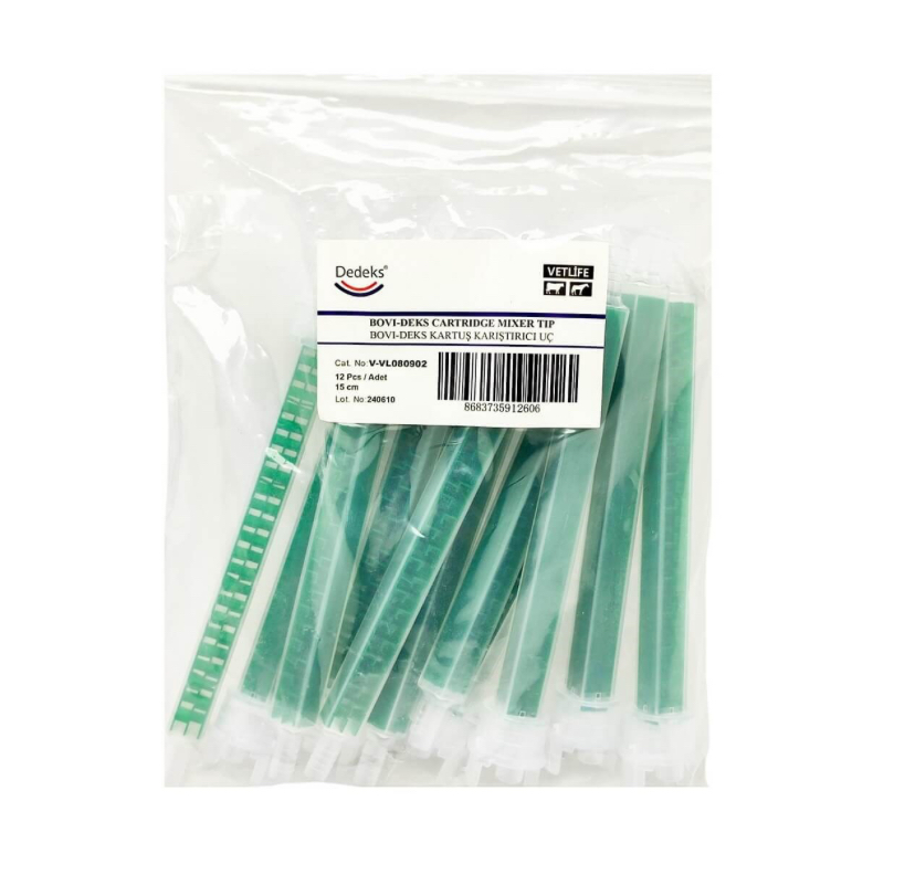 Bovideks tırnak takozu yapıştırıcısı için özel olarak üretilmiş karıştırıcı uçlardır. Paket içerisinde 12 adet karıştırıcı mikser ucu bulunmaktadır.