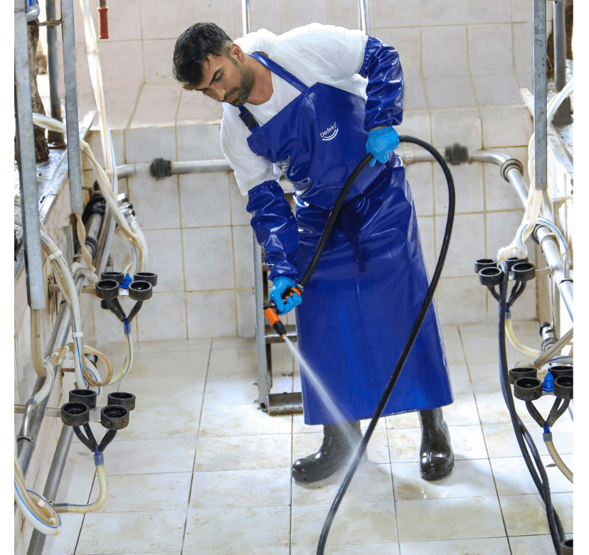 Mavi Renkli Doğum ve Sağımcı Apronu (80 x 120 cm) Su geçirmez özelliğe sahip olup, yırtılmalara karşı dayanıklı şekilde üretilmiştir. -25 ile +70 derece sıcaklıklara dayanıklıdır. Büyükbaş ve küçükbaş süt işletmelerinde sağımhane çalışanları için vazgeçilmez ekipmanlardan biridir. Ayarlanabilir klips sistemi sayesinde kullanıcının boyuna göre kolayca ayarlanabilir ve rahat kullanım sağlar. Süt sağım hijyen ürünleri arasında en çok tercih edilen ürünlerden biridir. Not: Kolluklar fiyata dahil değildir, mağazamızda ayrı olarak satılmaktadır.