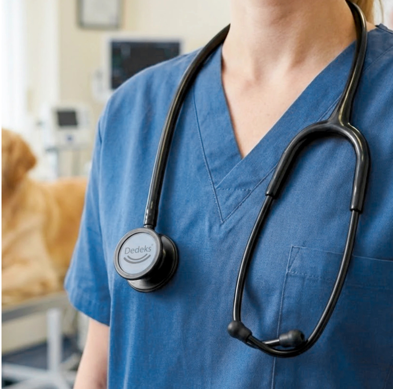 Profesyonel çift taraflı muayene steteskopudur. Veteriner hekimlerin sık karşılaştığı sorunlardan biri; muayene sırasında kalp ve solunum seslerini net duyamamak, dış ortam gürültüsünün sesi etkilemesi veya sesin boğuk gelmesidir. Bu durum doğru tanı koymayı zorlaştırır ve muayene sürecini yavaşlatır. Dedeks Classic DualScope 2, bu sorunları ortadan kaldırmak için geliştirilmiş profesyonel bir steteskoptur. Gelişmiş diyafram teknolojisi sayesinde hem küçük hem büyük hayvanlarda yüksek ses netliği, güçlü duyum ve gürültü azaltma sağlar. Ergonomik yapısı sayesinde uzun süreli kullanımlarda konfor sunar. Kutu içeriğinde yer alan yedek kulak uçları ve yedek diyafram ile uzun ömürlü kullanım sağlar. ⸻ Öne Çıkan Avantajlar: • Temiz ve Güçlü Ses İletimi: Kalp, akciğer ve damar seslerini net duyma • Çift Taraflı Gövde: Farklı hayvan türlerinde hızlı ve doğru muayene imkânı • Gürültü Azaltıcı Yapı: Klinik ve saha ortamında dış sesleri minimize eder • Ergonomik Kulaklık: Uzun muayenelerde konfor sağlar • Yedek Parça Dahil: Yedek diyafram + 4 çift kulak ucu • Dayanıklı Malzeme: Yoğun kullanıma uygun metal gövde ve sağlam hortum